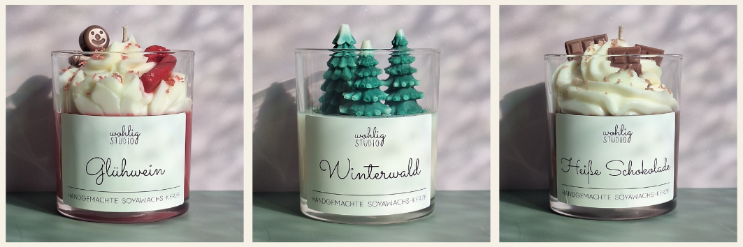 Viele der Kerzen sind Duftkerzen. Die nachhaltigen Duftöle werden in Deutschland, Frankreich und der Schweiz produziert.